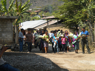Para buscarlas y traerlas, se toma dos a tres días y, el 15 de marzo de cada año, se velan en la casa del presidente del cofrade acompañadas con música de marimba, rezos, comidas y bebidas, así como tamalitos o café con pan. El siguiente día, las flores son llevadas a la iglesia en compañía de la gente (hombres y mujeres, niños y estudiantes de los distintos establecimientos de la localidad, algunos, vestidos con traje típico) a través de una procesión que recorre las principales calles de la comunidad. Cuando llegan al templo, se les rinde una breve homilía y luego la bendición; después, son incrustadas en las paredes, atrio y fachada de la iglesia.