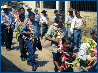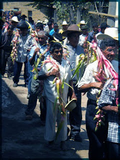 Durante la procesión las mujeres llevan las ofrendas en canastos. Es un aspecto